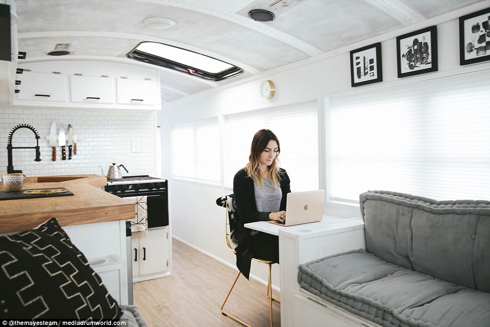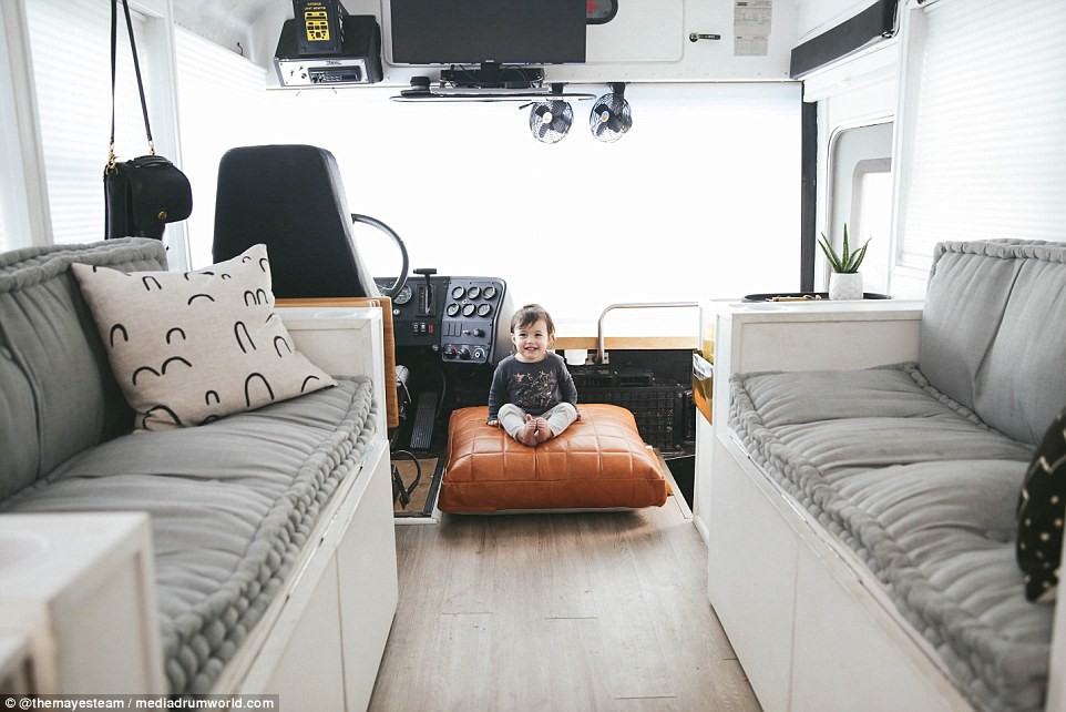 Đầu tiên, đôi vợ chồng tháo hết những chiếc ghế trên xe và thay vào đó là các đồ nội thất nhỏ gọn mà xinh xắn phù hợp với diện tích không gian bên trong chiếc xe. Chiếc giường ngủ xinh xinh cho 4 đứa trẻ, tủ bếp nhỏ nhắn... mọi thứ đều thật vừa vặn đến không ngờ.
