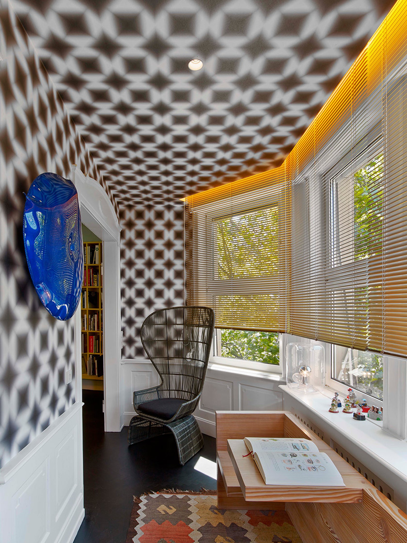 Có thể nói trong ngôi nhà này, bất cứ không gian nào cũng khiến bạn bất ngờ, thấy thú vị, dù nó là không gian phụ như phòng tắm, tủ đồ. Những cánh cửa tủ tích hợp gương soi hay những bức tường dán giấy độc đáo thực sự là những điểm cộng đáng nhắc đến ở đây.