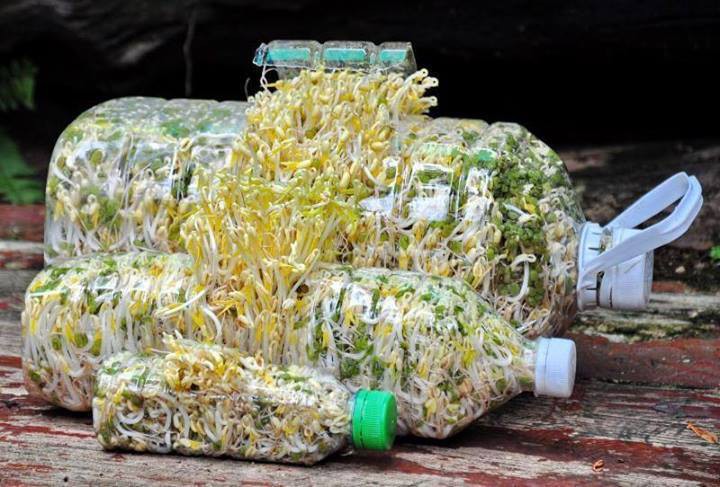 Đây quả là một cách nhanh, gọn gàng và an toàn cho những ai muốn trồng giá đỗ tại nhà. Chỉ cần có chỗ để đặt chai nước, không cần phải là khu vực rộng rãi là bạn đã có giá đỗ để dùng rồi đấy.
