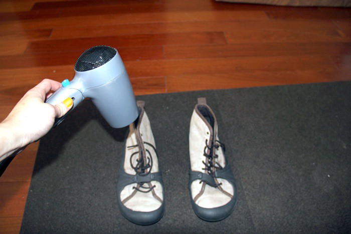 Những ngày thời tiết nồm ẩm, thì việc phơi quần áo, giày dép sẽ thật là "nỗi trăn trở" vì chúng rất khó khô, thậm chí còn bốc mùi khó chịu. Nhưng đừng lo, những lúc như vậy bạn hãy dùng máy sấy tóc. Chỉ cần bật máy sấy ở nhiệt độ cao rồi hong quần áo và giày cho đến khi khô hẳn. Tuy sẽ tốn khá nhiều thời gian nhưng nó cũng có thể "cứu nguy" cho bạn trong trường hợp trời nồm ẩm kéo dài, mà quần áo thì chẳng chịu khô.