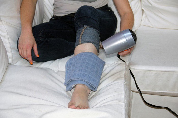 Nếu lỡ có bị va đập ở đâu đó, bạn hãy lấy một chiếc khăn ướt đặt lên chỗ bị đau, sau đó dùng máy sấy xả hơi nóng lên chỗ đau, hơi nóng từ máy sấy sẽ giúp máu lưu thông, giảm đau.